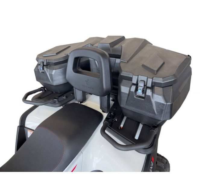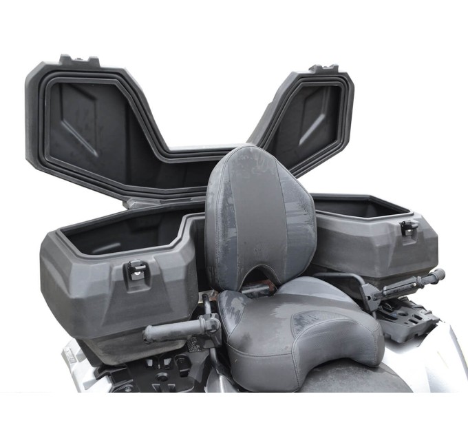 Задній кофр для квадроцикла великої ємності замикається на два замки з металевими пряжками. Виготовлений із високоякісного удароміцного поліетилену високої щільності, кофр захищений від води та пилу.